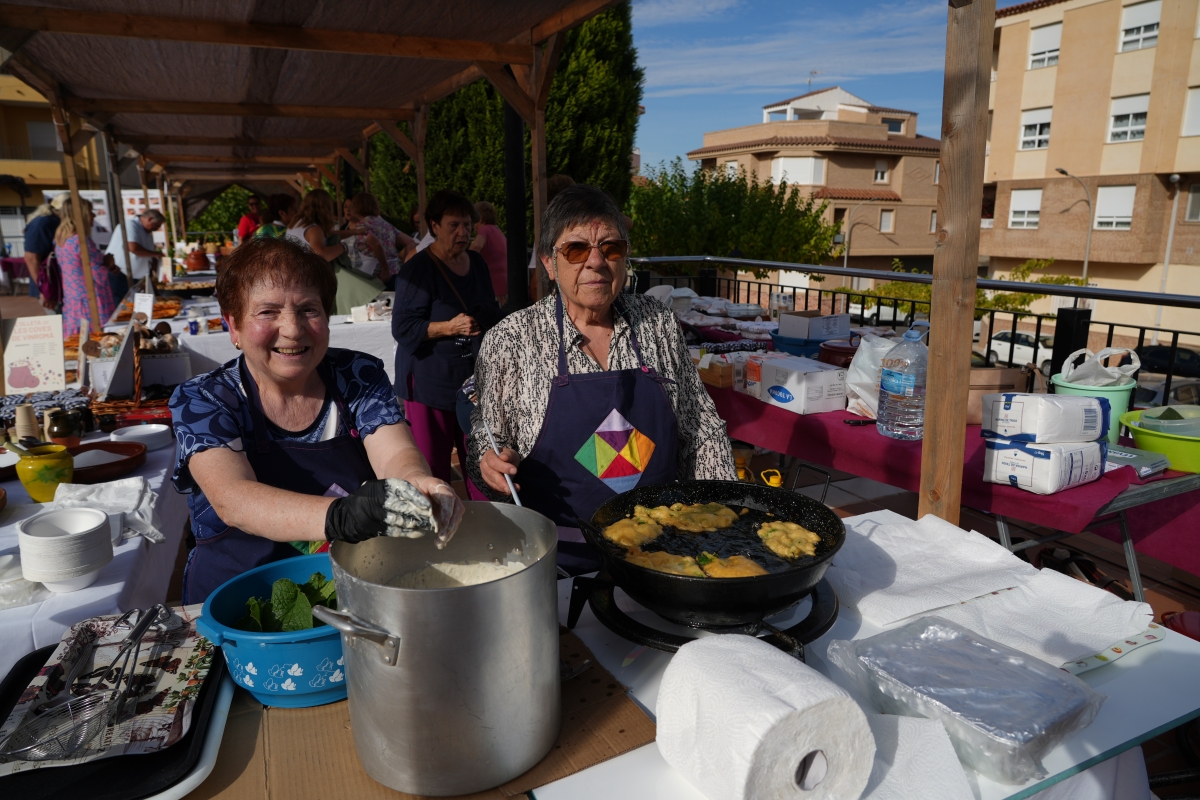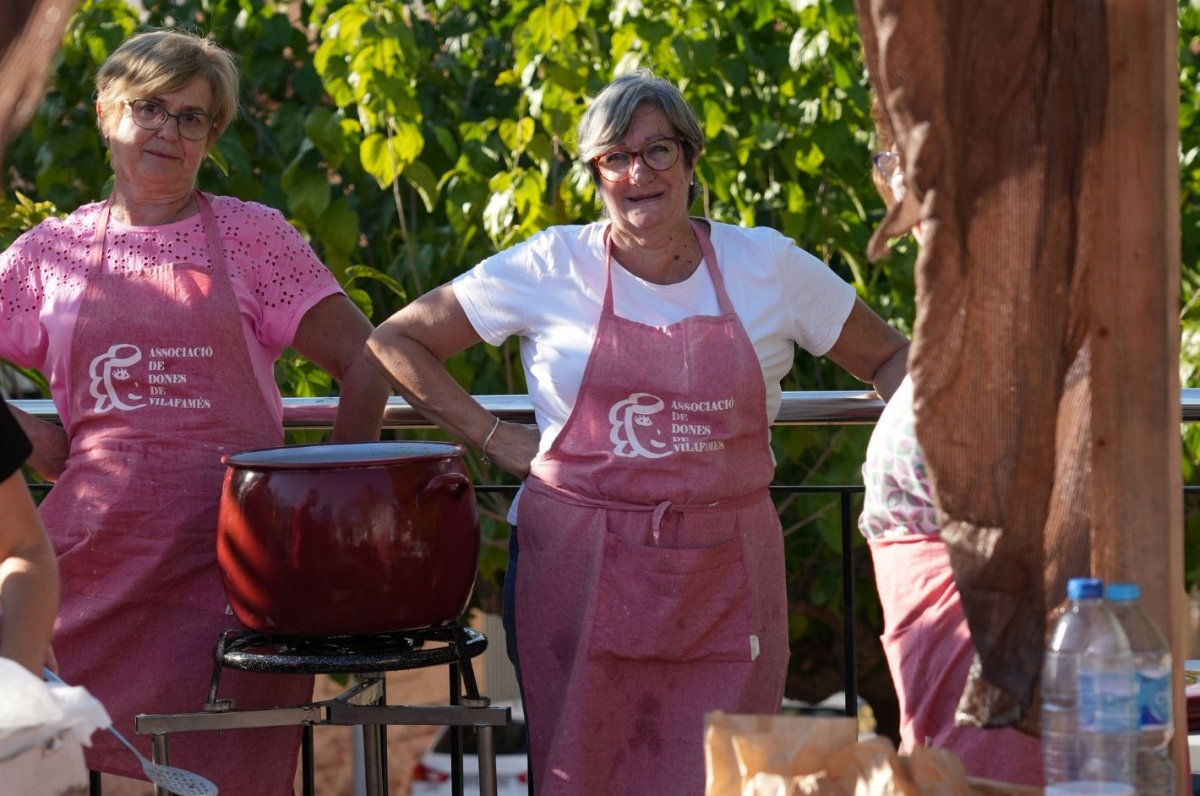 Siete asociaciones de mujeres —una por cada pueblo— subieron al escenario con sus delantales y recuerdos familiares, ofreciendo su versión de una receta que solía transmitirse de madre a hija. A su lado, el cocinero Nicolás Barrera, del restaurante Pou de Beca (Vall d’Alba), moderó el coloquio con la sensibilidad de quien sabe que cocinar es también un acto de memoria y resistencia: